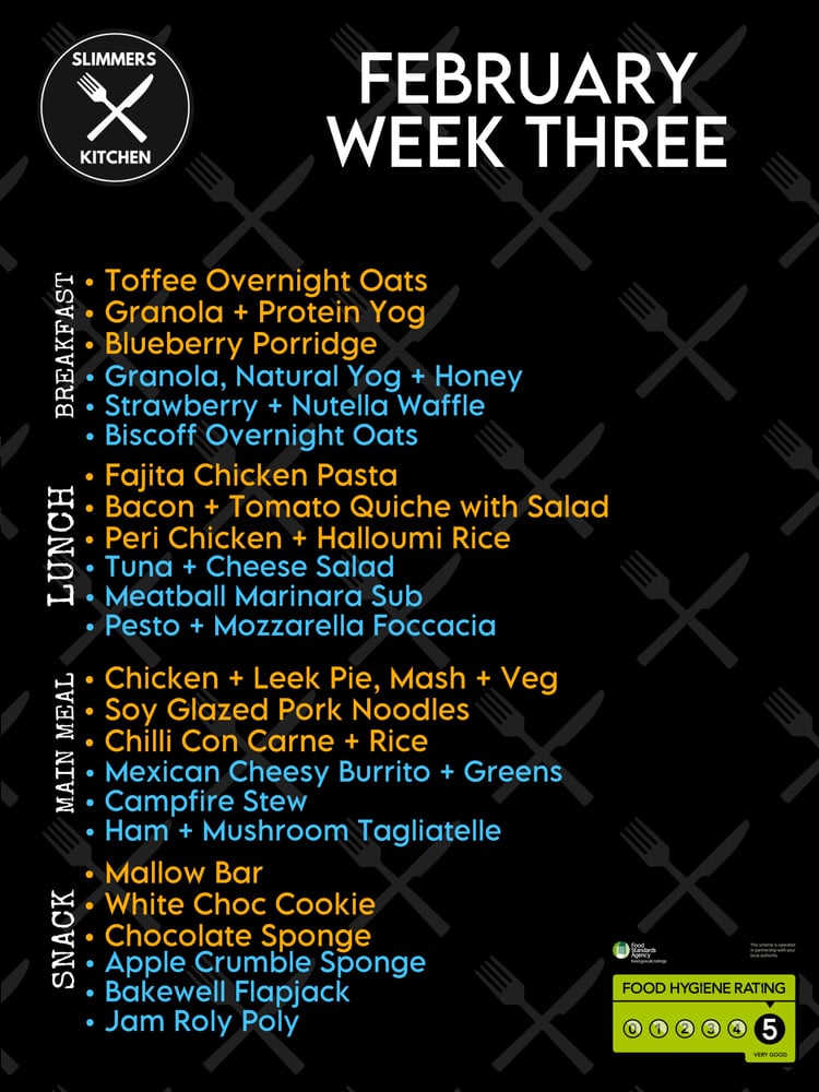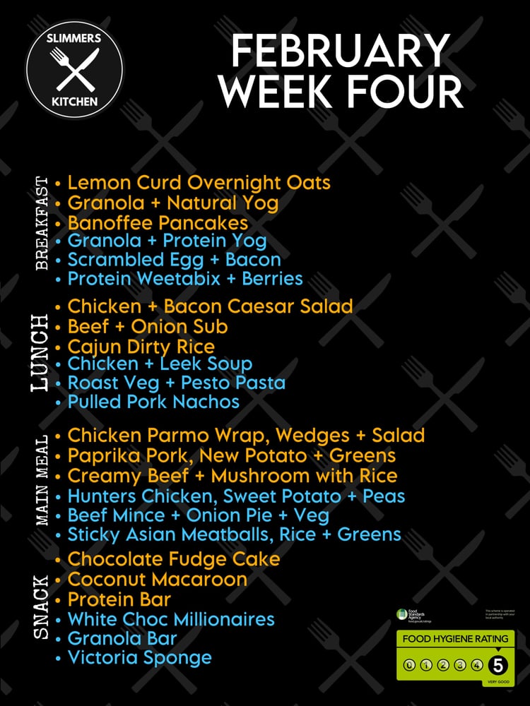 Pick ANY x5 breakfast, x5 lunch & x5 main meals from the options on our weekly menu.